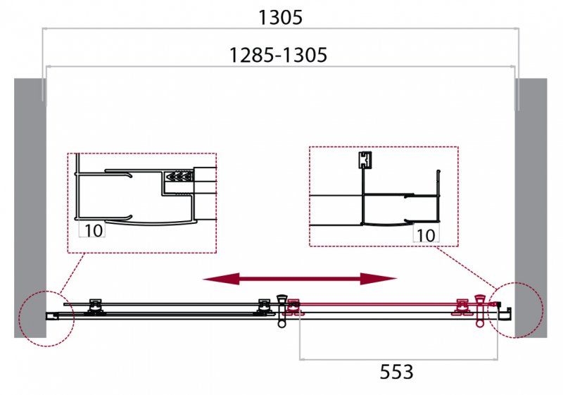 Регулировка ширины: предусмотрена за счет боковых профилей