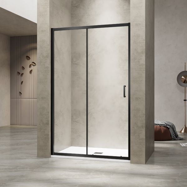 Душевая раздвижная дверь-купе в нишу PA-114 профиль черный, одностворчатая, ручка скоба