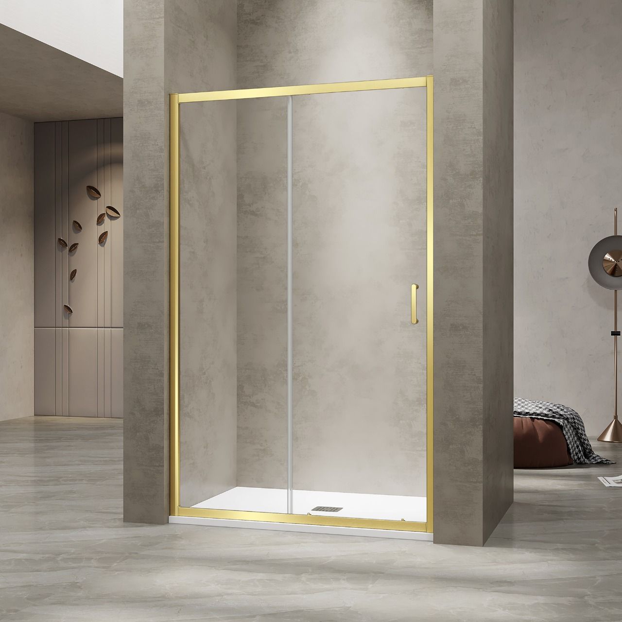 Идеальное решение для ниши.Душевая перегородка с раздвижной дверью создает аккуратную прямоугольную душевую зону, эффективно ограждая водяной поток.