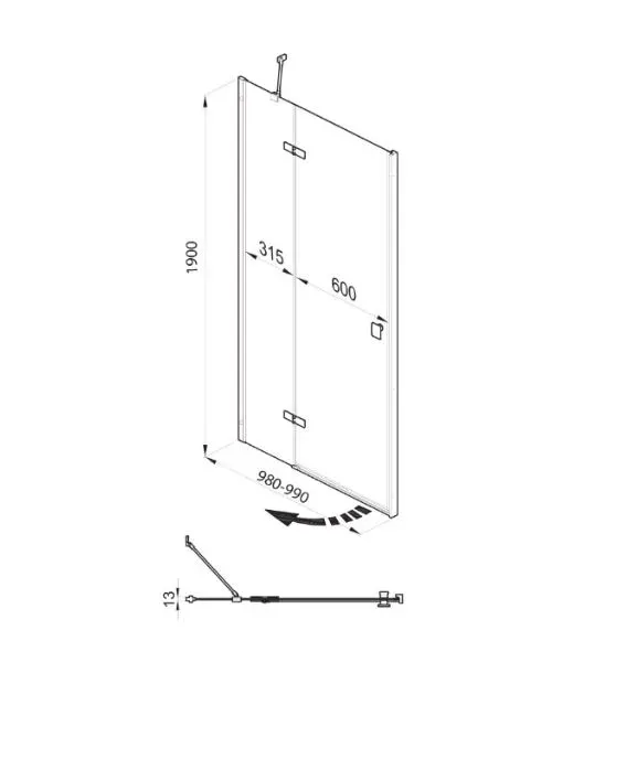 - Размеры (ШхВ): 990х1900 мм.