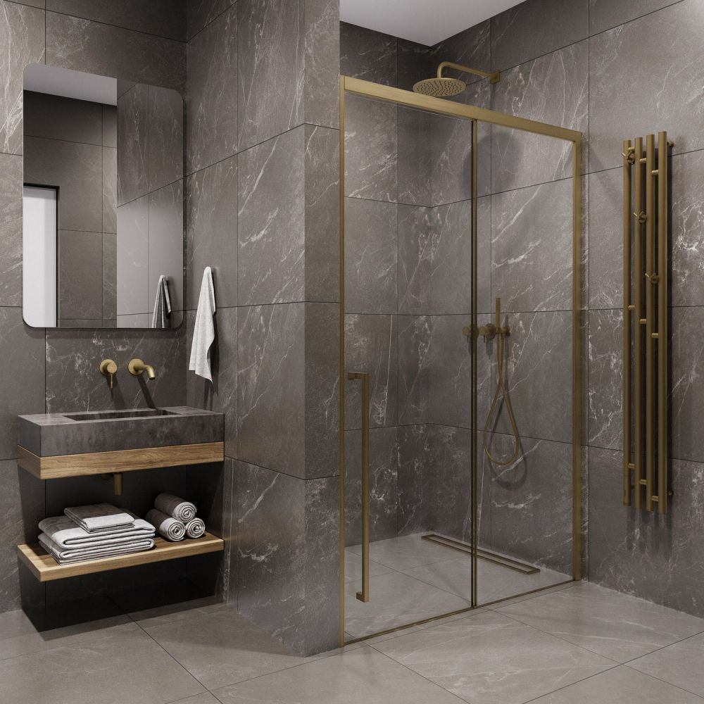 Душевая дверь в нишу Timo T55L 150 см левая золото матовое купить