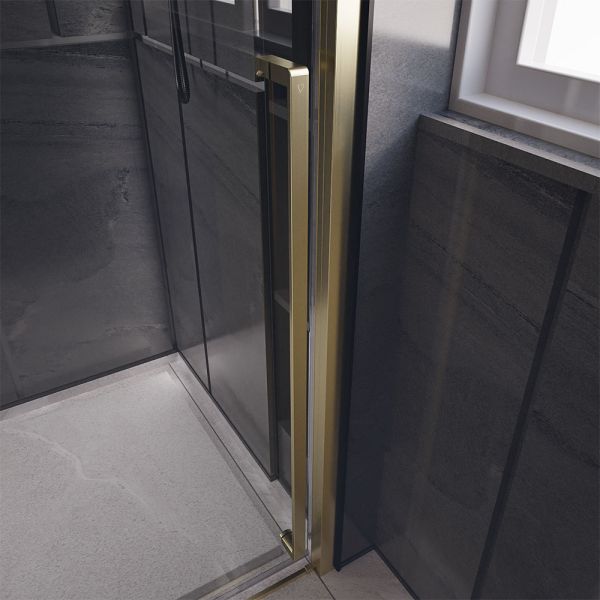 Душевая дверь Veconi Premium Trento PTD-30G, 1400х2000, брашированное золото, стекло прозрачное купить