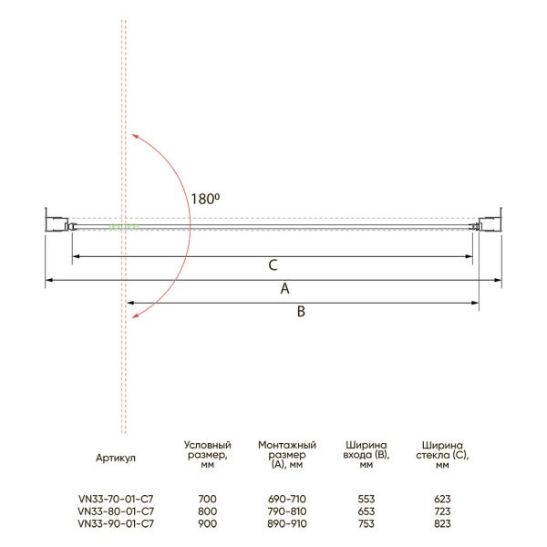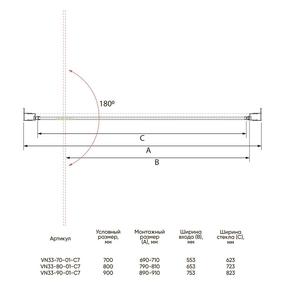 Душевая дверь Veconi Vianno VN-33R, 800x1950, хром, стекло дождь