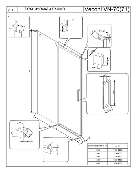 Душевая дверь Veconi Vianno VN-70CH, 1300x1950, хром, стекло прозрачное купить