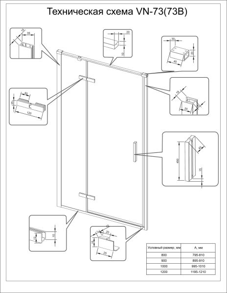 Душевая дверь Veconi Vianno VN-73R/L, 800x1950, Хром, стекло дождь