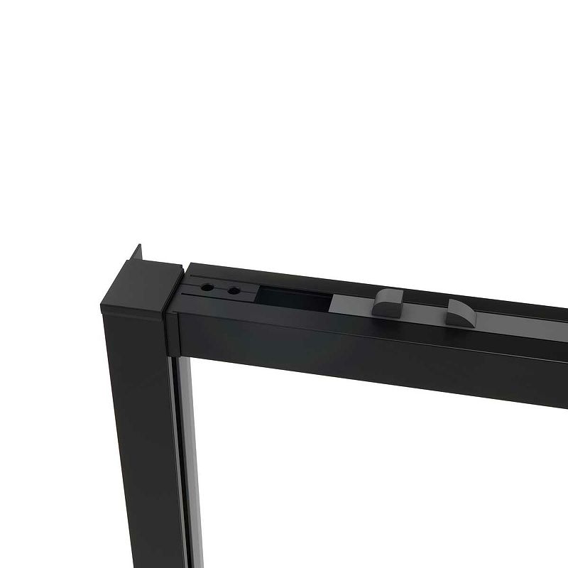 Регулировка ширины предусмотрена за счет боковых профилей, что позволяет без проблем установить изделие даже при кривизне стен.