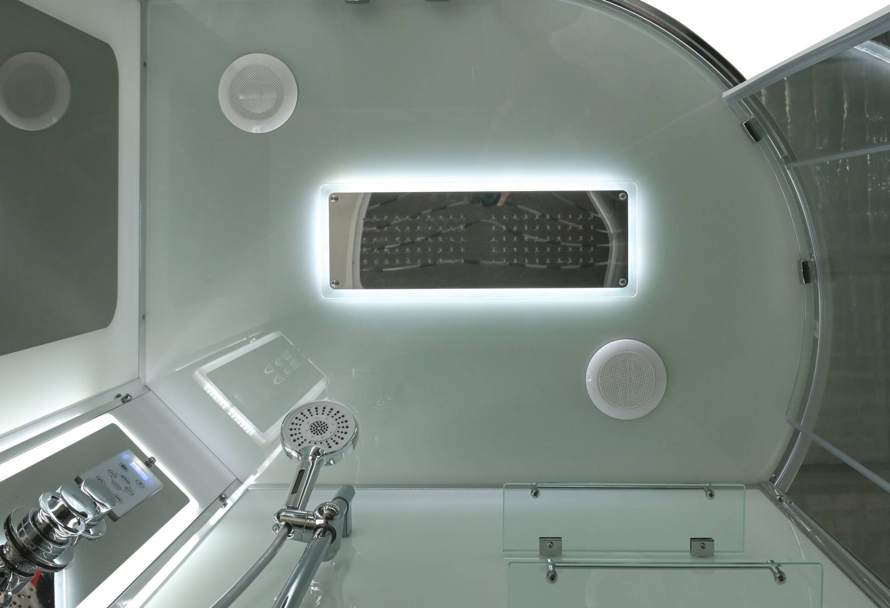 Стильная душевая кабина AvaCan сочетает в себе высокую функциональность, практичность и надежность. При изготовлении применяется безопасное закаленное стекло, надежно фиксируемое алюминиевым профилем.Профиль сделан из алюминия повышенной прочности. Сборка без силикона (увеличивает срок службы, защищает от протечек), внутренняя сборка (облегчает установку и ревизию; позволяет установить в ограниченном пространстве и обойтись без демонтажа других сантехнических приборов), смеситель резьбовой (без хомутов).Двойные металлические ролики дверей (распределение нагрузки на два ролика, увеличивают срок службы). Душевая штанга(позволяет регулировать по высоте ручную лейку), ручная арома-лейка с витамином С (картридж в комплекте,есть возможность замены или удаления картриджа), полочки(из стекла, с ограничителем), сифон с гидрозатвором, сенсорный пульт управления с функциями: блютуз, LED подсветка, радио, вытяжка, гидромассаж спины, тропический (верхний) душ.
