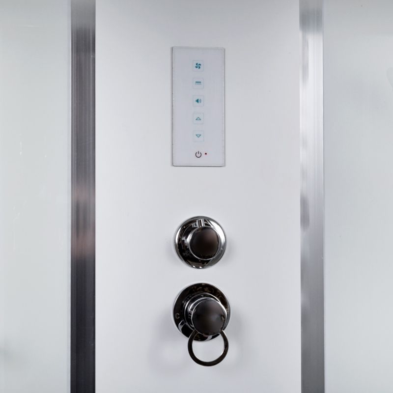 Стильная душевая кабина с внутренней сборкой AvaCan EM 4515 с электрикой сочетает в себе высокую функциональность, практичность и надежность. Для изготовления применяют безопасное закаленное стекло толщиной 5 мм, надежно фиксируемое алюминиевым профилем. Цвет профиля хром. В комплекте душевой гарнитур, зеркало, сенсорный пульт управления, донный клапан (клик-клак), душевой гарнитур, смеситель, тропический (верхний) душ, переключатель режимов, вентиляция, полочки, тропический (верхний) душ, вентиляция, радио.