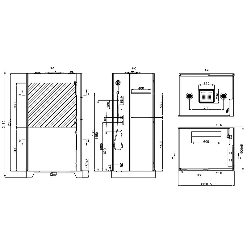 Материал боковых стенок: закаленное стекло, 5 мм.