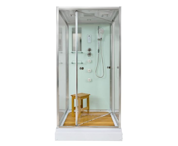 • Душевая кабина Deto V9015 (с крышей,гидромассажем,электрикой,LED подсветкой и табуретом)
