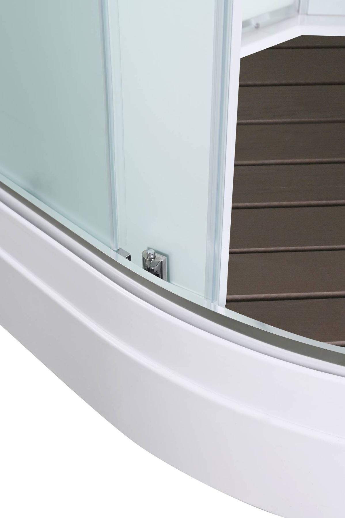 Стильная душевая кабина AvaCan сочетает в себе высокую функциональность, практичность и надежность. При изготовлении применяется безопасное закаленное стекло, надежно фиксируемое алюминиевым профилем. Профиль сделан из алюминия повышенной прочности. Сборка без силикона (увеличивает срок службы, защищает от протечек), внутренняя сборка (облегчает установку и ревизию; позволяет установить в ограниченном пространстве и обойтись без демонтажа других сантехнических приборов), смеситель резьбовой (без хомутов). Съемный экран поддона (позволяет осуществлять подключение и ревизию сифона).Двойные металлические ролики дверей (распределение нагрузки на два ролика, увеличивают срок службы). Душевая штанга(позволяет регулировать по высоте ручную лейку), ручная арома-лейка с витамином С (картридж в комплекте,есть возможность замены или удаления картриджа), полочки(из стекла, с ограничителем), сифон с гидрозатвором.