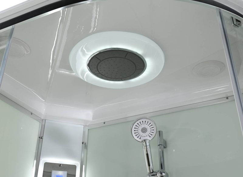 Стильная душевая кабина AvaCan EM2912LLEDT сочетает в себе высокую функциональность, практичность и надежность. При изготовлении применяется безопасное закаленное стекло толщиной 5 мм (прозрачное), надежно фиксируемое алюминиевым профилем. Сборка без силикона (увеличивает срок службы), внутренняя сборка(облегчает установку и ревизию; позволяет установить в ограниченном пространстве), смеситель резьбовой (без хомутов). Съемный экран поддона (позволяет осуществлять ревизию сифона). Цвет профиля  хром. Двойные металлические ролики дверей (увеличивают срок службы).В комплекте : душевая штанга, две полочки , тропический (верхний) душ, арома-лейка с витамином С (картридж съемный),полимерная вставка в поддон(имитация дерева),сифон, ручки дверей из нержавейки , двойные ролики ,пульт сенсорный(Блютуз ,LED подсветка ,радио ,вытяжка),гидромассаж спины.