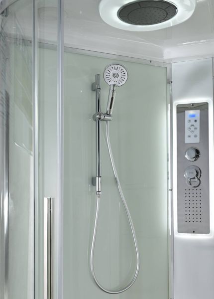 Стильная душевая кабина AvaCan EM2912RLEDT сочетает в себе высокую функциональность, практичность и надежность. При изготовлении применяется безопасное закаленное стекло толщиной 5 мм (прозрачное), надежно фиксируемое алюминиевым профилем. Сборка без силикона (увеличивает срок службы), внутренняя сборка(облегчает установку и ревизию; позволяет установить в ограниченном пространстве), смеситель резьбовой (без хомутов). Съемный экран поддона (позволяет осуществлять ревизию сифона). Цвет профиля хром. Двойные металлические ролики дверей (увеличивают срок службы).В комплекте : душевая штанга, две полочки , тропический (верхний) душ, арома-лейка с витамином С (картридж съемный),полимерная вставка в поддон(имитация дерева),сифон, ручки дверей из нержавейки , двойные ролики ,пульт сенсорный(Блютуз ,LED подсветка ,радио ,вытяжка),гидромассаж спины.