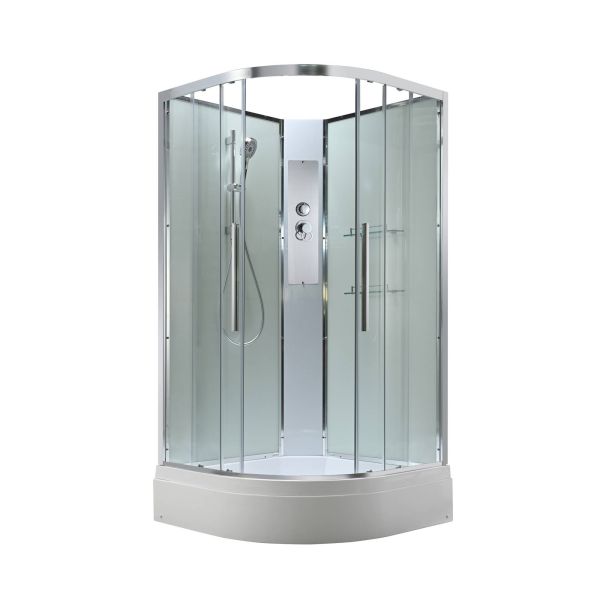 Стильная душевая кабина AvaCan сочетает в себе высокую функциональность, практичность и надежность. При изготовлении применяется безопасное закаленное стекло, надежно фиксируемое алюминиевым профилем. Профиль сделан из алюминия повышенной прочности. Сборка без силикона (увеличивает срок службы, защищает от протечек), внутренняя сборка (облегчает установку и ревизию; позволяет установить в ограниченном пространстве и обойтись без демонтажа других сантехнических приборов), смеситель резьбовой (без хомутов). Съемный экран поддона (позволяет осуществлять подключение и ревизию сифона).Двойные металлические ролики дверей (распределение нагрузки на два ролика, увеличивают срок службы). Душевая штанга(позволяет регулировать по высоте ручную лейку), ручная арома-лейка с витамином С (картридж в комплекте,есть возможность замены или удаления картриджа), полочки(из стекла, с ограничителем), сифон с гидрозатвором.