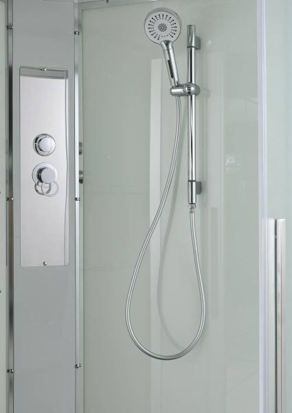 Стильная душевая кабина AvaCan сочетает в себе высокую функциональность, практичность и надежность. При изготовлении применяется безопасное закаленное стекло, надежно фиксируемое алюминиевым профилем. Профиль сделан из алюминия повышенной прочности. Сборка без силикона (увеличивает срок службы, защищает от протечек), внутренняя сборка (облегчает установку и ревизию; позволяет установить в ограниченном пространстве и обойтись без демонтажа других сантехнических приборов), смеситель резьбовой (без хомутов). Съемный экран поддона (позволяет осуществлять подключение и ревизию сифона).Двойные металлические ролики дверей (распределение нагрузки на два ролика, увеличивают срок службы). Душевая штанга(позволяет регулировать по высоте ручную лейку), ручная арома-лейка с витамином С (картридж в комплекте,есть возможность замены или удаления картриджа), полочки(из стекла, с ограничителем), сифон с гидрозатвором.