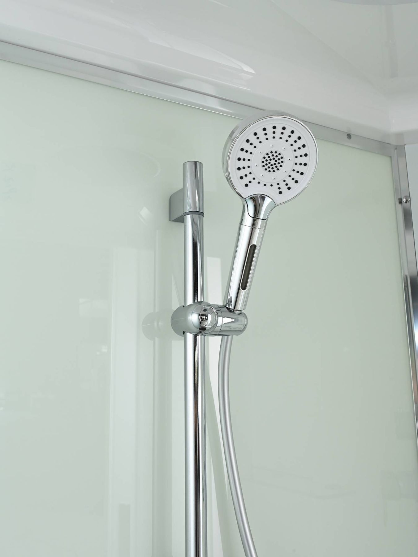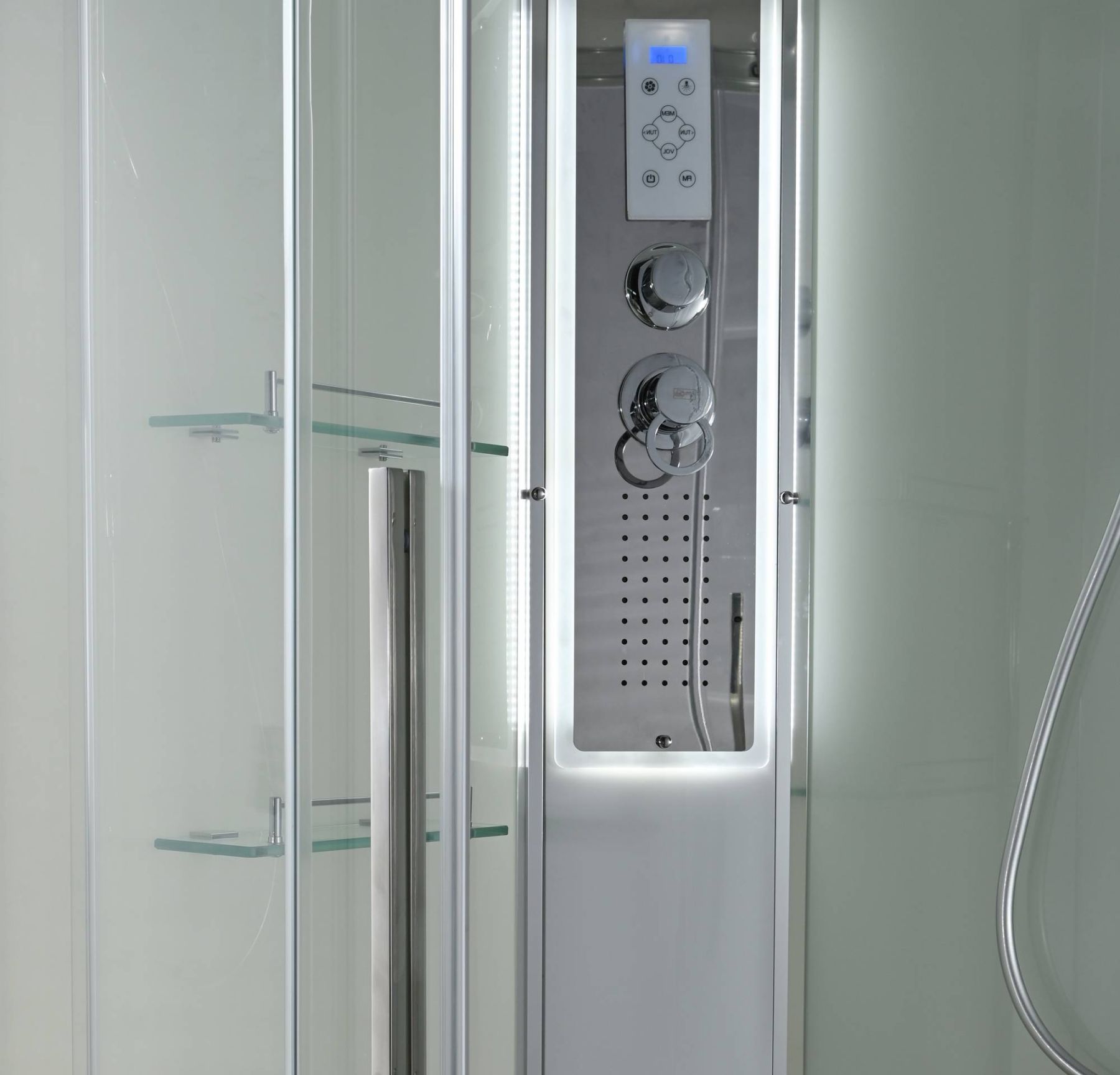Стильная душевая кабина AvaCan сочетает в себе высокую функциональность, практичность и надежность. При изготовлении применяется безопасное закаленное стекло, надежно фиксируемое алюминиевым профилем.Профиль сделан из алюминия повышенной прочности. Сборка без силикона (увеличивает срок службы, защищает от протечек), внутренняя сборка (облегчает установку и ревизию; позволяет установить в ограниченном пространстве и обойтись без демонтажа других сантехнических приборов), смеситель резьбовой (без хомутов). Съемный экран поддона (позволяет осуществлять подключение и ревизию сифона).Двойные металлические ролики дверей (распределение нагрузки на два ролика, увеличивают срок службы). Душевая штанга(позволяет регулировать по высоте ручную лейку), ручная арома-лейка с витамином С (картридж в комплекте,есть возможность замены или удаления картриджа), полочки(из стекла, с ограничителем), сифон с гидрозатвором, сенсорный пульт управления с функциями: блютуз, LED подсветка, радио, вытяжка, гидромассаж спины, тропический (верхний) душ.