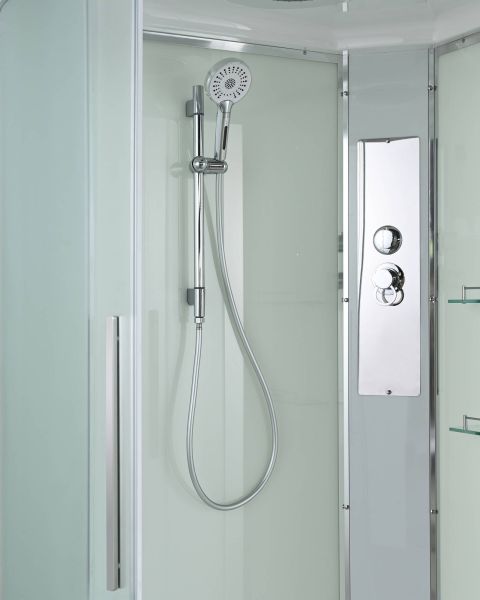 Стильная душевая кабина AvaCan сочетает в себе высокую функциональность, практичность и надежность. При изготовлении применяется безопасное закаленное стекло, надежно фиксируемое алюминиевым профилем. Профиль сделан из алюминия повышенной прочности. Сборка без силикона (увеличивает срок службы, защищает от протечек), внутренняя сборка (облегчает установку и ревизию; позволяет установить в ограниченном пространстве и обойтись без демонтажа других сантехнических приборов), смеситель резьбовой (без хомутов). Съемный экран поддона (позволяет осуществлять подключение и ревизию сифона).Двойные металлические ролики дверей (распределение нагрузки на два ролика, увеличивают срок службы). Душевая штанга(позволяет регулировать по высоте ручную лейку), ручная арома-лейка с витамином С (картридж в комплекте,есть возможность замены или удаления картриджа), полочки(из стекла, с ограничителем), сифон с гидрозатвором.
