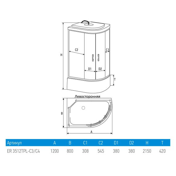 Душевая кабина Erlit Comfort ER3512TPL-C4-RUS (1200x800x2150)