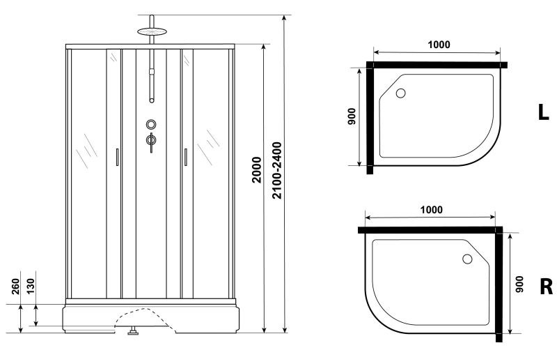 Душевая кабина Niagara NG-33094-14LBKTG с гидромассажем 100x90см серебро/матовое