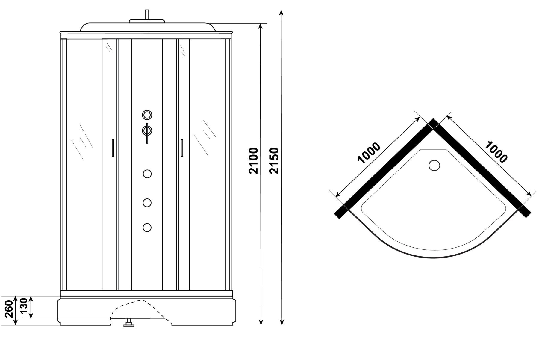 • Размеры (ДхШхВ) 100x100х215