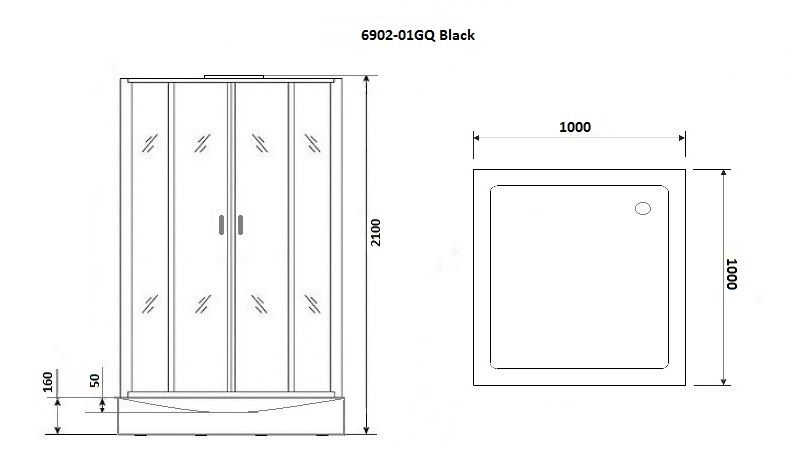 Душевая кабина Niagara Premium NG-6902-01GQ BLACK 100х100 см