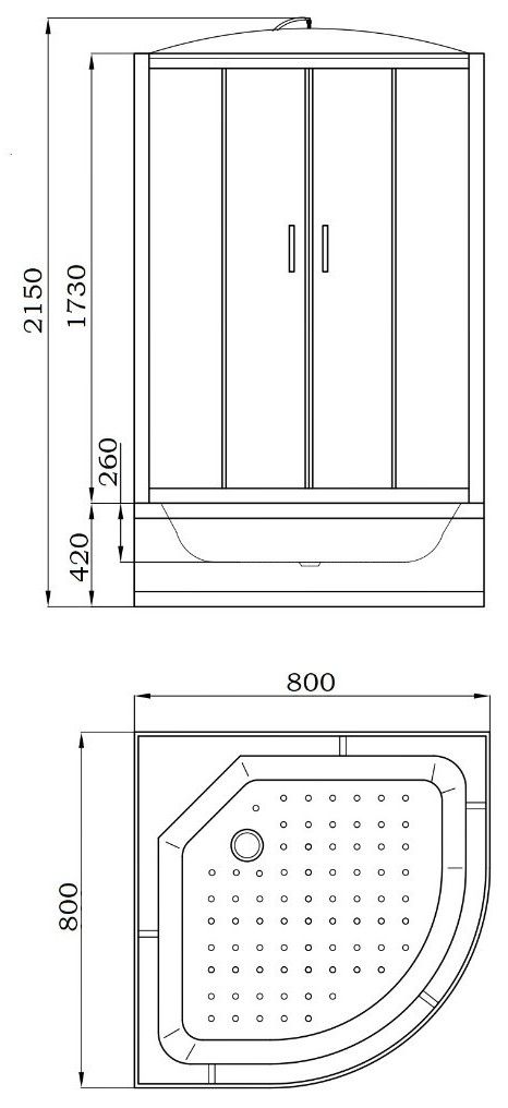 • Высокий поддон (42 см), АСБ пластик, белый, полукруглый. Поддон можно использовать в качестве ванночки для купания детей или замачивания вещей. Противоскользящее покрытие поддона предупреждает падения.