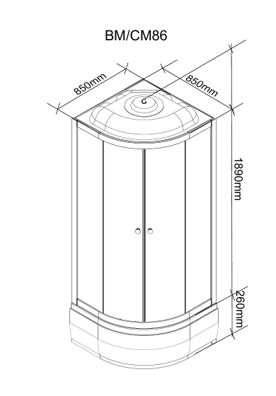 БЕЗСИЛИКОНОВАЯ СБОРКАДушевая кабина Parly BM86Размер: 85х85х215 смСветлая кабина из матового стекла лаконично впишется в любой интерьер и не будет перетягивать на себя внимание об общей задумки оформления ванной комнаты.Достоинства:Компактный размер. Внутри больше места, чем в других моделях в таком же размере, за счет отсутствия центральной панели.Матовое закаленное стекло (4 мм) устойчиво к случайным ударам. Матовое полотно не требует частой уборки.Задние стенки из закаленного матового стекла толщиной 4 ммПрофиль: белый алюминиевый. Не подвержен коррозии.Поддон: средний 26 см с бортиком 2 см, ассиметричный. Предупреждает разбрызгивание воды. Высоту поддона смогут преодолеть пожилые и люди, имеющие проблемы со здоровьем.Ролики: белые на клипсах, верхние двойные и одинарные нижние.Раздвижные двери ходят плавно и плотно смыкаются за счет магнитной ленты.Сборка без применения силикона. Конструкция душевой кабины обеспечивает слив воды внутрь поддона. Сам поддон по всему периметру оснащен водонепроницаемым бортиком высотой 2 см, который исключает перелив воды за пределы душевой зоны.Внимание! Производитель оставляет за собой право вносить изменения в конструкцию и комплектацию моделей без предварительного уведомления!