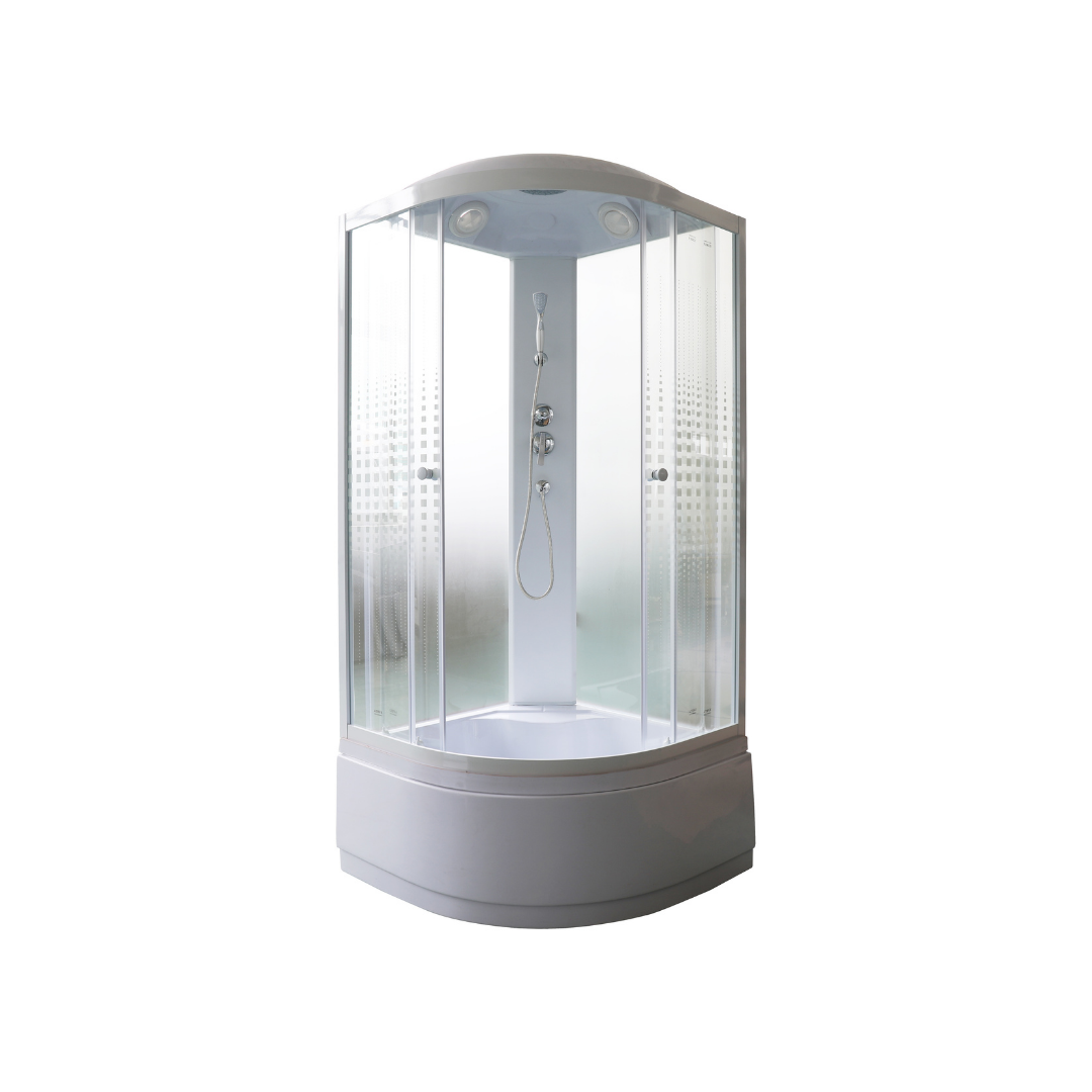 Размер: 100х100х215 смДушевая кабина с высоким поддоном практична в использовании – в ней удобно купать детей и животных, замачивать вещи и постельное белье. За счет закругленной формы кабина занимает минимум места в санузле. При этом внутри душевой зоны достаточно места, чтобы принять водные процедуры с комфортом.Достоинства:Прозрачное с кубическим рисунком, 4 мм. Безопасное закаленное полотно устойчиво к случайным ударам.Стенки – закаленное стекло белое 4 мм.Профиль: белый алюминиевый. Не боится высокой влажности и перепадов температуры, устойчив к образованию коррозии.Поддон: высокий 42 см, полукруглый, рельефное дно, литое сиденье.Комплектация: верхний душ ТРОПИК, ручной душ, сифон.Магнитные уплотнители под 45° не позволяют теплу выходить из душевой кабины, защищают помещение от просачивания воды.Раздвижные двери не соскакивают с направляющих, образуют комфортную ширину входа.Соединение без болтовое.Дополнительные силиконовые уплотнители для задних стенок.Внимание! Производитель оставляет за собой право вносить изменения в конструкцию и комплектацию моделей без предварительного уведомления!