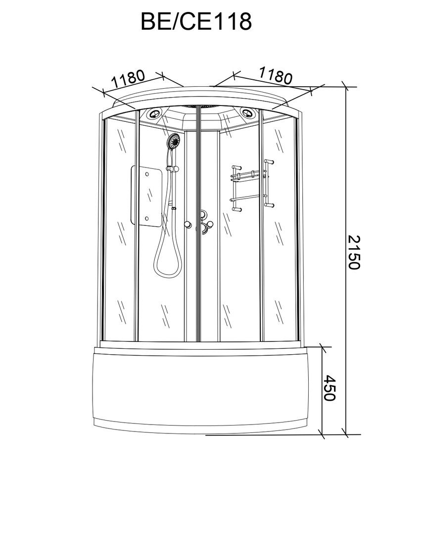 Душевая кабина Parly CE118Размер: 118х118х215 смОсобенности:Стекло: тонированное закаленное, 4 мм.Стенки: закаленное стекло чёрное, 4 мм.Профиль: белый алюминиевый.Поддон: высокий полукруглый.Комплектация: полка, верхний душ ТРОПИК, ручной душ, сифон, зеркало , налив воды в поддонВнимание! Производитель оставляет за собой право вносить изменения в конструкцию и комплектацию моделей без предварительного уведомления!