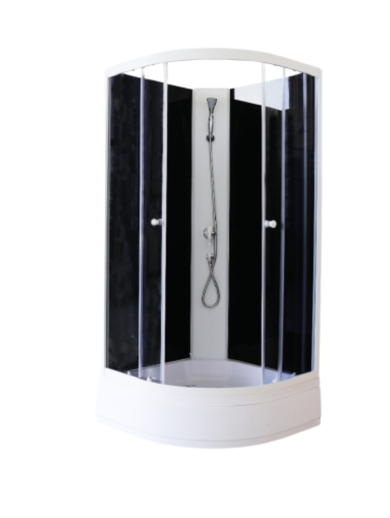 Душевая кабина Parly ECM92NR БЕЗ КРЫШИРазмер: 90х90х200 смТемная душевая кабина станет стильным акцентов в ванной комнате. Модель без крыши подойдет в санузел с низким потолком и для высоких людей, которые упираются головой в крышу стандартных кабин.Достоинства:Закаленное тонированное стекло 4 мм практически невозможно разбить. В случае битья полотно рассыпается на грани с тупым концами, о которые невозможно пораниться.Задние стенки из закаленного черного стекла, 4 мм.Профиль: белый алюминиевый. Профиль не боится перепадов температуры и не подвержен коррозии.Поддон: средний 26 см, полукруглый.Комплектация: ручной душ, сифонМагнитные уплотнители под 45° предупреждают просачивание воды наружу.Соединение без болтовоеДополнительные силиконовые уплотнители для задних стенок.Раздвижные двери ходят плавно, не соскакивают с направляющих.Кабины без крыши стоит устанавливать в ванных комнатах с хорошей вентиляцией.Внимание! Производитель оставляет за собой право вносить изменения в конструкцию и комплектацию моделей без предварительного уведомления!