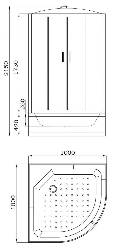 Душевая кабина EB1021 бренда PARLY (код 9198)Размер: 100х100х215 см (высокий поддон 42см)Достоинства: