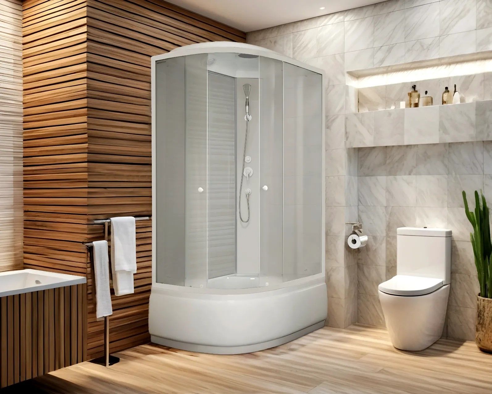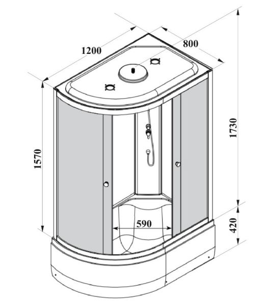 • Поддон: высокий 42 cм, асимметричный, с рельефным дном.