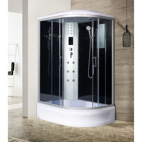 ~ крыша ~ верхний душ ~ верх. свет ~ динамик ~ вентилятор ~ цент.стойка ~ пульт упр-я ~ радио ~ телефон ~ смеситель с переключ. режимов ~ 3 г/м форс. ~ штанга ~ ручной душ 3х режимн. ~ зеркало ~ полочка ~ поддон п/кр. низ.с/съем. экр.(Н=26см) ~ сифон