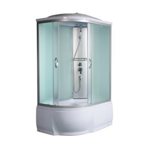 ~ крыша ~ верхний душ ~ вентиляц. отв-я (2шт) ~ цент. стойка ~ ручной душ 3-х позиц. ~ держатель д/лейки ~ полочка ~ смеситель с переключ. режимов ~ сиденье ~ поддон п/кр выс. со/съемн экр.(Н=46см) ~ сифон