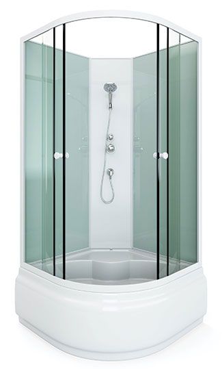поддон высокий 40см фронтальные стекла: матовые фактурные задние стекла: белые матовые задняя панель белый пластик белый алюминиевый профиль регулируемые ролики белые ручки для дверей смеситель, ручная лейка слив перелив с сифоном