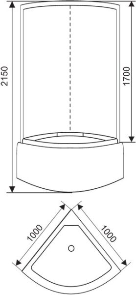 поддон высокий 45см фронтальные стекла: тонированные задние стекла : черные задняя панель: пластик серебро хромированный алюминиевый профиль регулируемые ролики хромированные ручки для дверей 2-режимный смеситель ручная лейка слив с сифоном крыша с верхней лейкой
