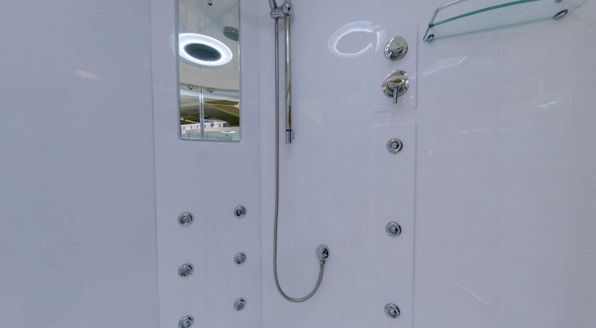 Душевой бокс Timo Lux T-7735C, 135 x 135 см, c крышей, высокий поддон, с гидромассажем, стекла прозрачные, профиль хром