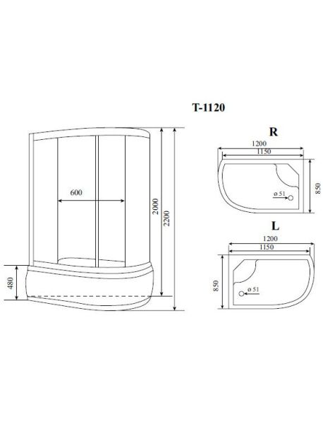 Душевая кабина Timo Standart T-6620BFR Black Fabric R 120x85см
