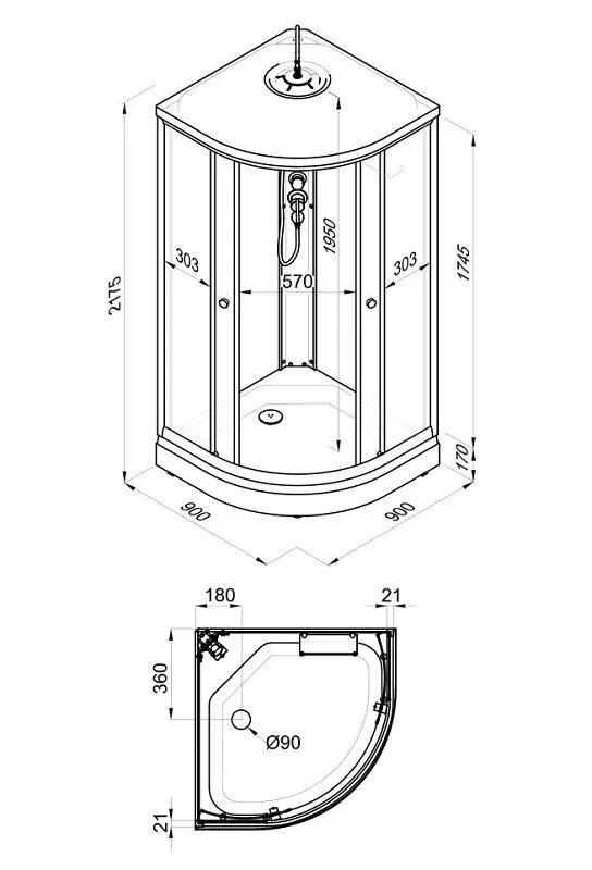 Душевая кабина с крышей ДК Лайт 90*90 А, 7 мест+сифон D90 Размер: 90 x 90 x 217.5 см ... Подробнее