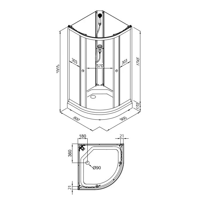 • Размеры: 90х90х191.5