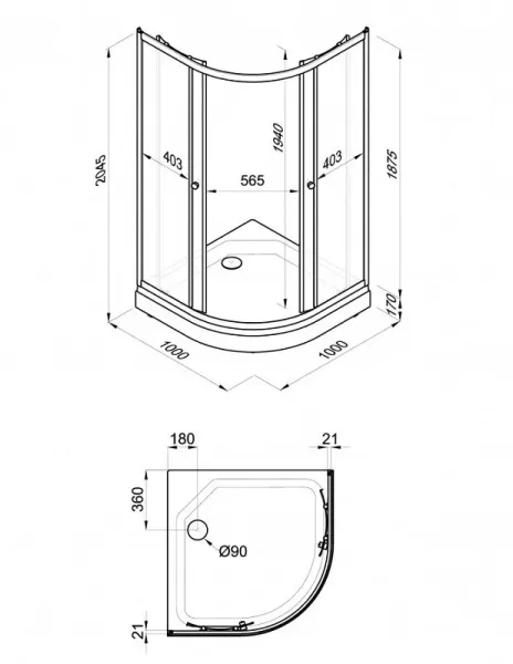 • Высота с поддоном: 204.5 см