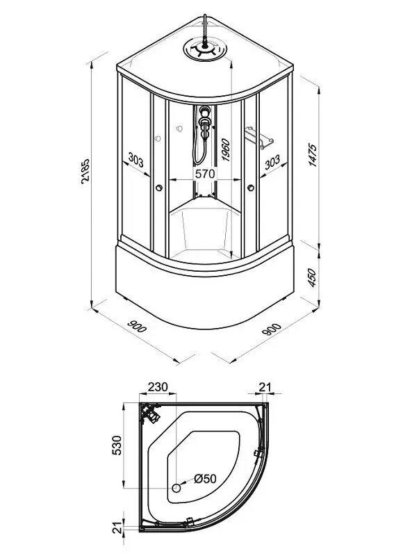 • Размер: 90 x 90 x 218.5 см