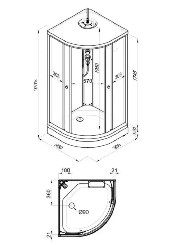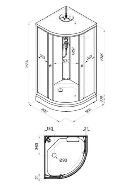• Размер: 90 x 90 x 217.5 см