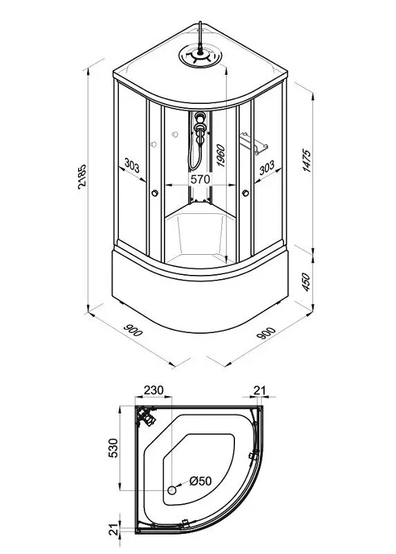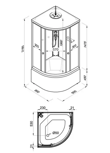 • Размер: 90 x 90 x 218.5 см