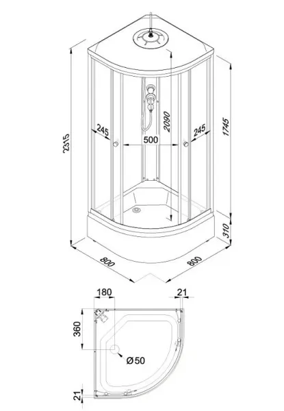 ДК Вельвет 80*80 В, 7 мест+сифон D50