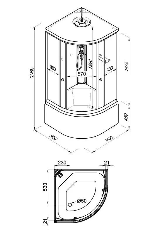Душевая кабина с крышей ДК Вельвет 90*90 Б, 9 мест+сифон D50 Размер: 90 x 90 x 218.5 см ... Подробнее