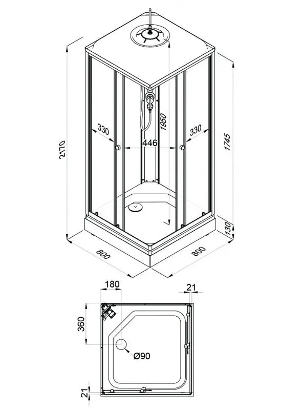 • Размер: 80 x 80 x 217 см