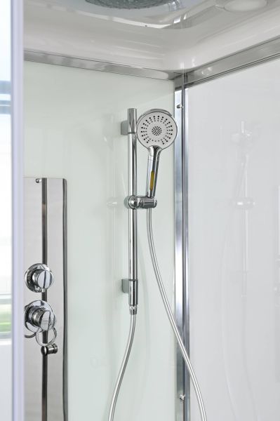 Стильная душевая кабина AvaCan сочетает в себе высокую функциональность, практичность и надежность. При изготовлении применяется безопасное закаленное стекло, надежно фиксируемое алюминиевым профилем. Профиль сделан из алюминия повышенной прочности. Сборка без силикона (увеличивает срок службы, защищает от протечек), внутренняя сборка (облегчает установку и ревизию; позволяет установить в ограниченном пространстве и обойтись без демонтажа других сантехнических приборов), смеситель резьбовой (без хомутов). Съемный экран поддона (позволяет осуществлять подключение и ревизию сифона).Двойные металлические ролики дверей (распределение нагрузки на два ролика, увеличивают срок службы). Душевая штанга(позволяет регулировать по высоте ручную лейку), ручная арома-лейка с витамином С (картридж в комплекте,есть возможность замены или удаления картриджа), полочки(из стекла, с ограничителем), сифон с гидрозатвором.