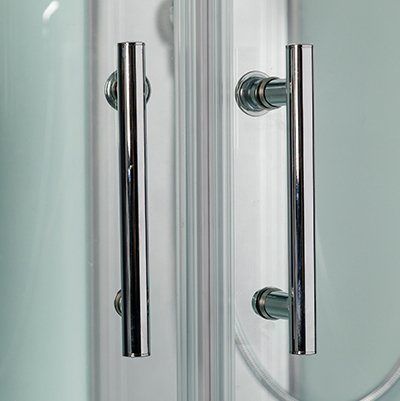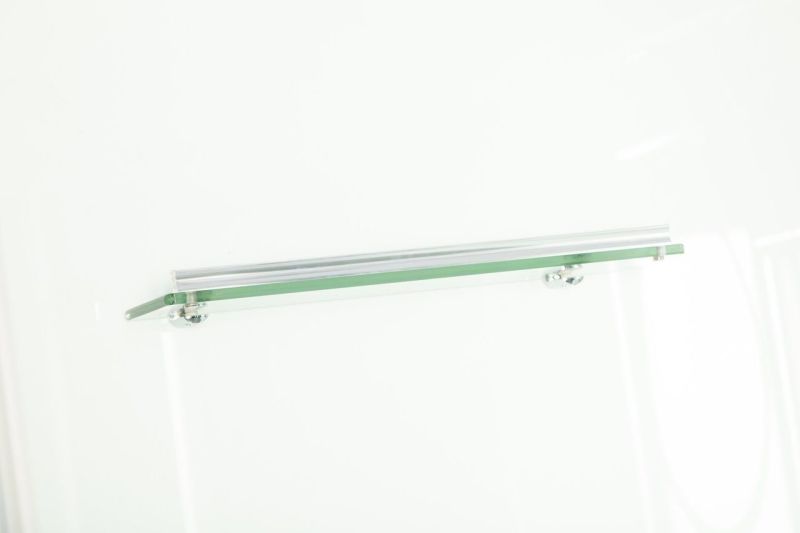 Смеситель латунный с резьбовыми выходами. Верхний металлический душ с системой Easy Clean. Ручной душ 3 положения. Штанга с мыльницей. Длина шланга 150-190 мм. Шланг растягивается. Полочка с металлическим ограничителем. Зеркало с фацетом и декоративной рамкой. Ручки металл хром. Двойные верхние металлические ролики. Силиконовые водонепроницаемые уплотнители. Акриловый поддон 55 см с сифоном. Экран съемный. Сифон с гидрозатвором. Клапан сифона металл. Сетка для улавливания волос. Резьбовое соединение всех задних шлангов.