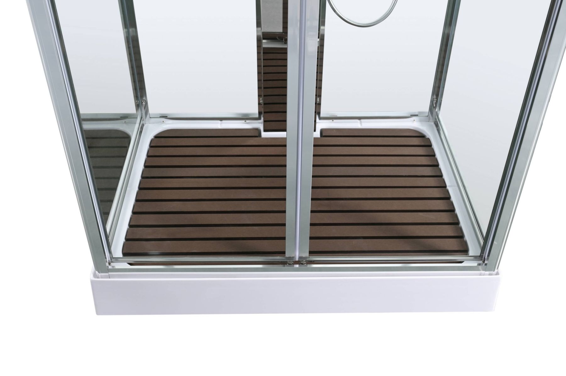 Стильная душевая кабина AvaCan сочетает в себе высокую функциональность, практичность и надежность. При изготовлении применяется безопасное закаленное стекло, надежно фиксируемое алюминиевым профилем.Профиль сделан из алюминия повышенной прочности. Сборка без силикона (увеличивает срок службы, защищает от протечек), внутренняя сборка (облегчает установку и ревизию; позволяет установить в ограниченном пространстве и обойтись без демонтажа других сантехнических приборов), смеситель резьбовой (без хомутов).Двойные металлические ролики дверей (распределение нагрузки на два ролика, увеличивают срок службы). Душевая штанга(позволяет регулировать по высоте ручную лейку), ручная арома-лейка с витамином С (картридж в комплекте,есть возможность замены или удаления картриджа), полочки(из стекла, с ограничителем), сифон с гидрозатвором, сенсорный пульт управления с функциями: блютуз, LED подсветка, радио, вытяжка, гидромассаж спины, тропический (верхний) душ.